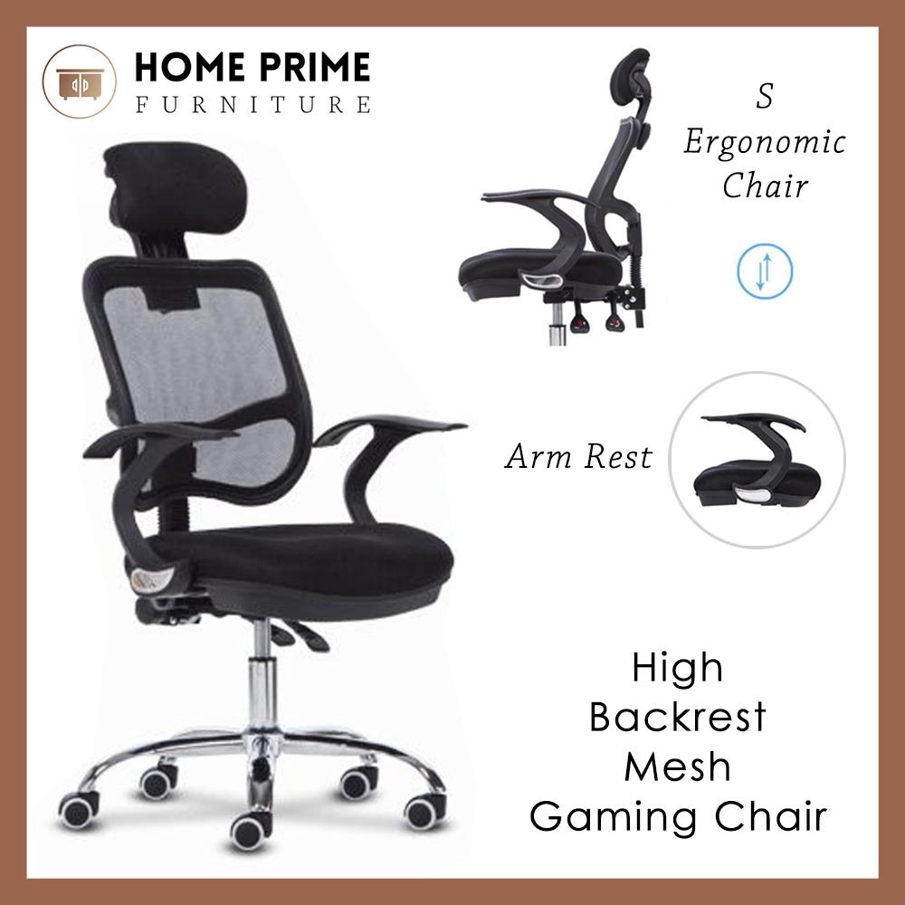 Curved mesh back helps with posture and spinal support.